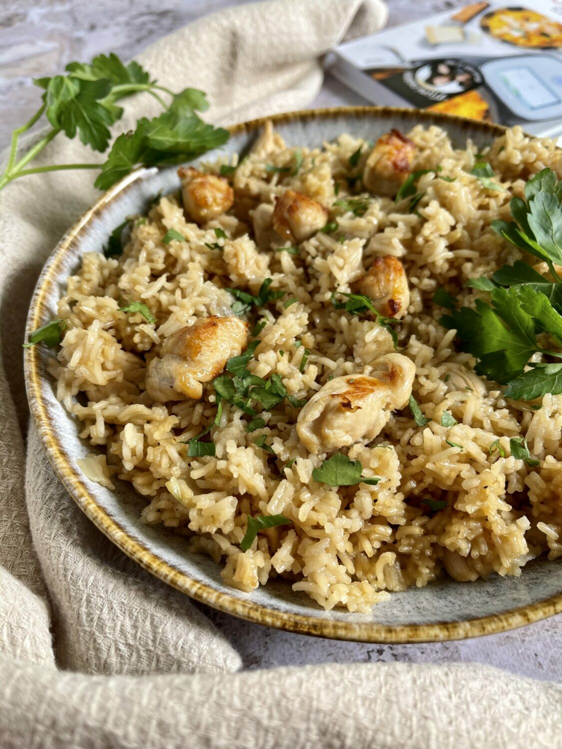 Aujourd’hui je te montre comment faire un riz au poulet avec ton companion. Un plat du quotidien délicieux à faire avec une petite touche sucré. Cette recette vient de mon livre « Mimi cuisine en un clin d’oeil au Companion ». Ce livre te permet de trouver des inspirations recettes à faire avec ton companion, par exemple comme ici, en seulement 3 étapes, ce qui veut dire que la recette se fait super rapidement. Fais maison, dans nos vies actives c’est possible je te montre ça.