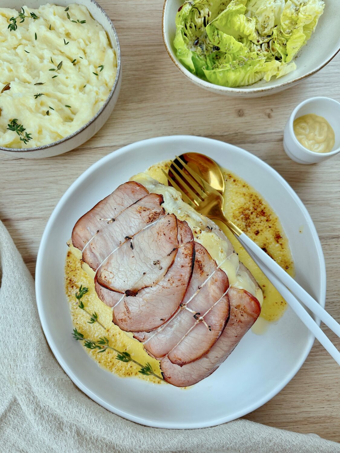 - Saupoudrez-le d'herbes de Provence puis déposez les tranches de fromage à raclette puis de bacon et ficelez-le.