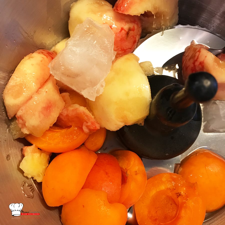 - Ajoutez l'eau, les glaçons, et le sucre si nécessaire (je n'ai pas ajouté de sucre car mes fruits ont un apport en sucre suffisant pour moi)
