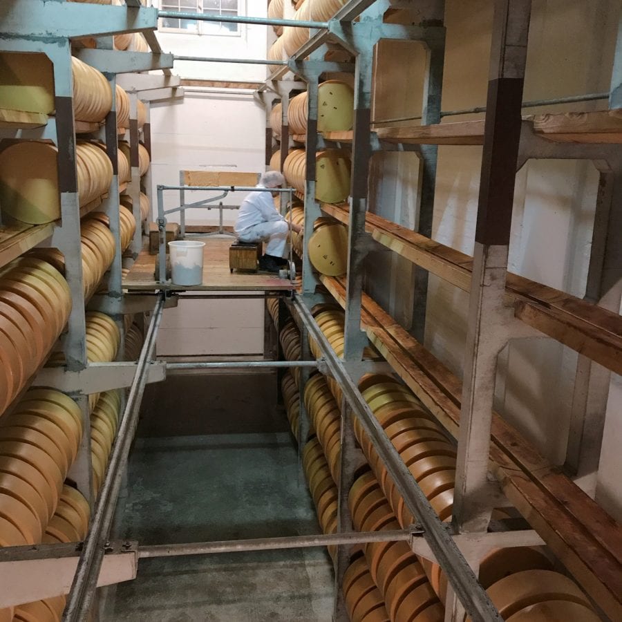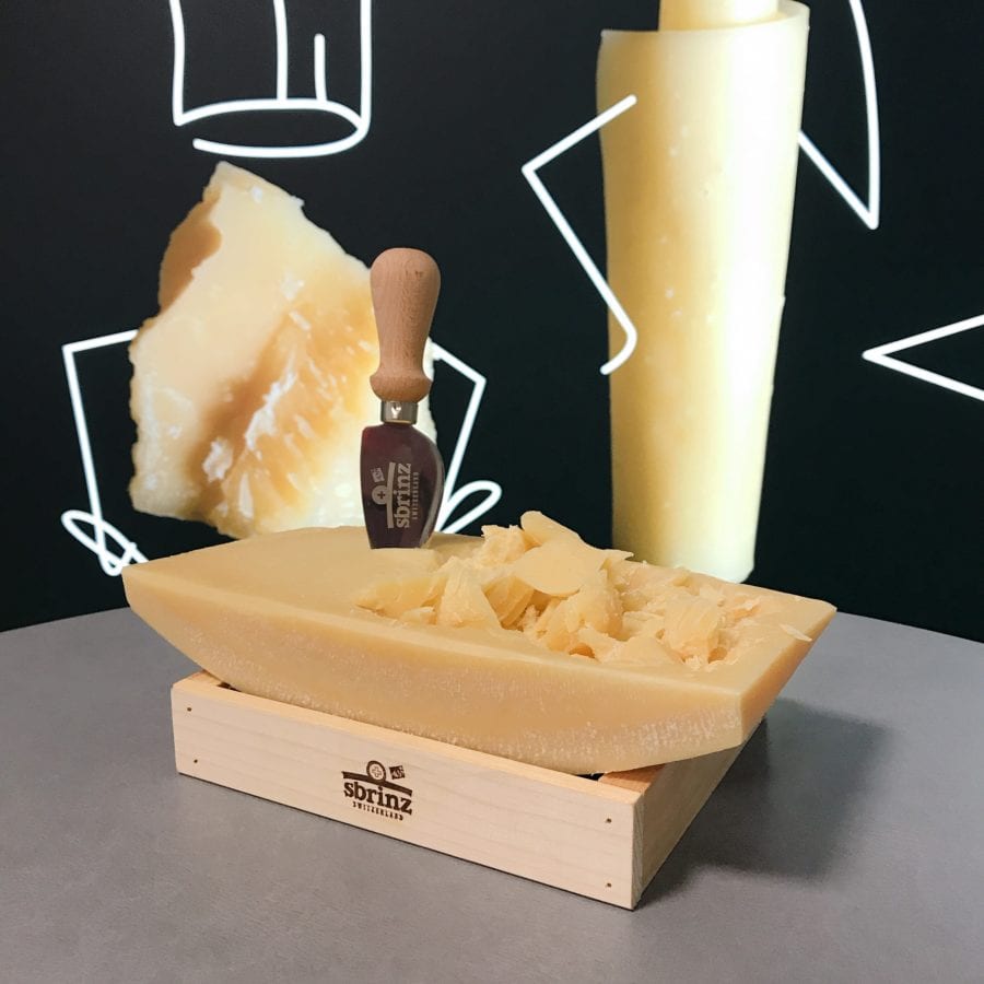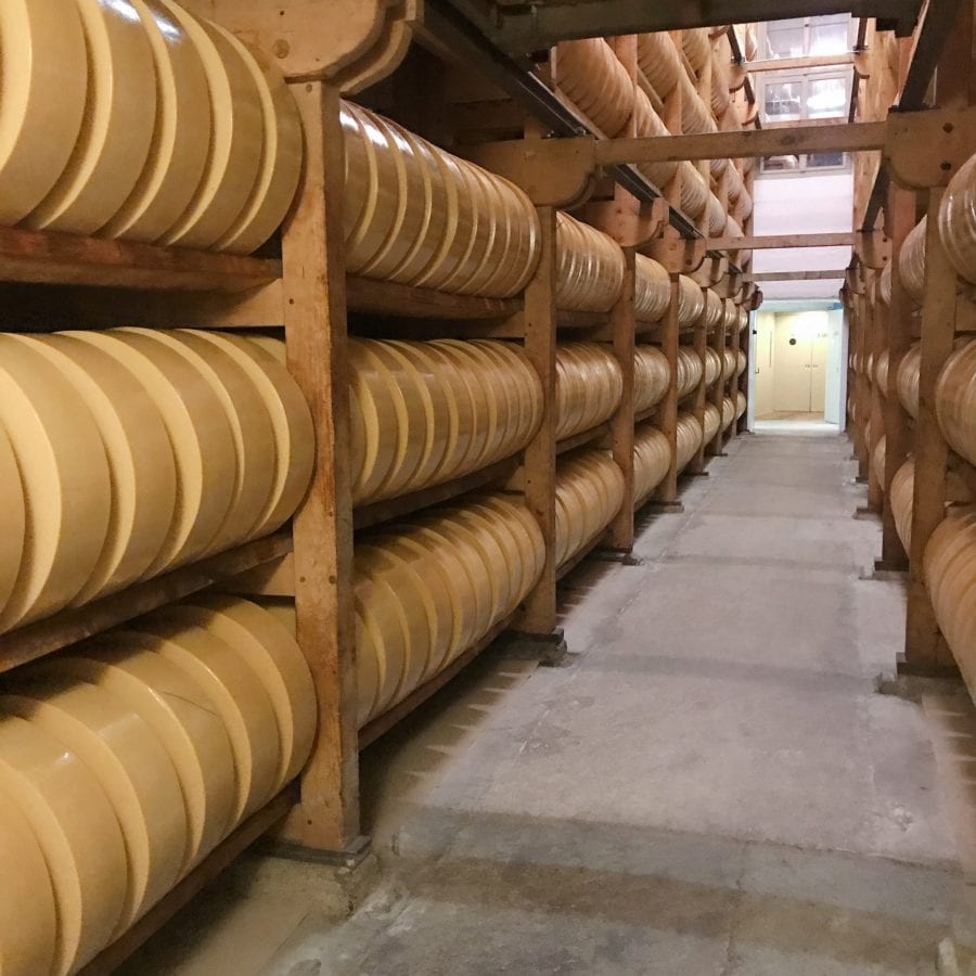 Je vous présente le Sbrinz AOP, c’est un fromage à pâte dure et dense au lait cru de vache. Il se déguste en le brisant avec la pointe d’un couteau et est très fruité, il ressemble au parmesan. Fabriqué de façon artisanale avec une recette traditionnelle secrète et affinée pendant 18 mois minimum. Vous pouvez visiter la cave d’affinage de Sbrinz à Lucerne dans le quartier St Karli. C’est juste dingue de voguer entre les 60 000 meules de Sbrinz AOP ! D’y découvrir leur savoir-faire et leur passion pour ce fromage. Les meules sont frottées, essuyées, nettoyées à la main ! Pendant 18 mois (durée de l’affinage) pour enlever les saletés et les moisissures liées à l’humidité.
