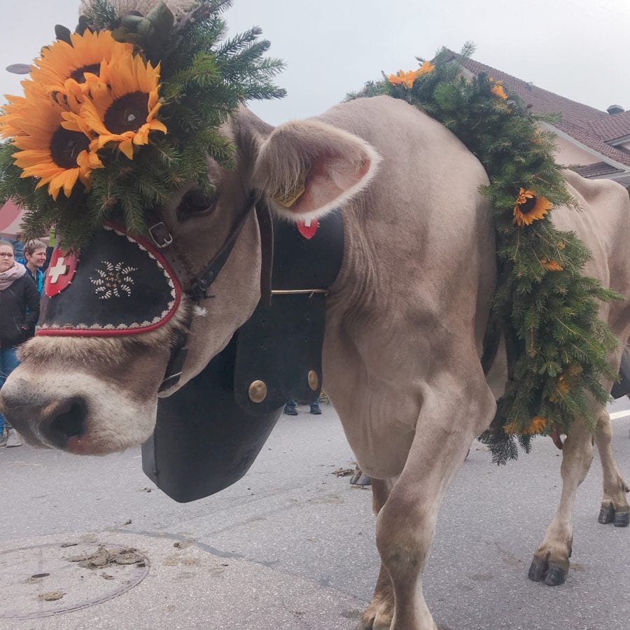 La cerise sur le gâteau avant de repartir vers la France est la descente des alpes. Un spectacle qui rassemble 12 000 visiteurs ! Une fête traditionnelle pour la descente des vaches Brunes montées au printemps dans les alpes. Les vaches redescendent en plaine fin septembre. À ce propos, pour cette occasion, 250 vaches décorées de rubans et de fleurs. Puis le village s’anime de groupes folkloriques et de marchés artisanaux.