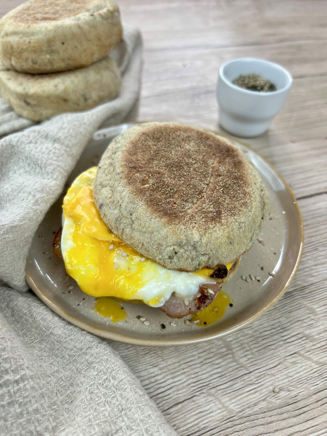Un Egg Mc Muffin comme au McDonald’s, avec l’odeur du bacon grillé et de l’œuf frais, associé à la texture moelleuse du muffin anglais, tout cela est réuni dans un Egg McMuffin délicieusement préparé.