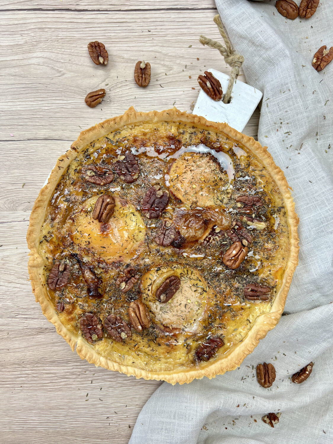 Les oignons caramélisés apportent une douceur irrésistible, tandis que le chèvre fondant ajoute une touche crémeuse. Le miel, quant à lui, vient sublimer le tout avec une note sucrée délicate. Cette combinaison d’ingrédients crée une harmonie de saveurs et de textures qui séduira à coup sûr vos convives.