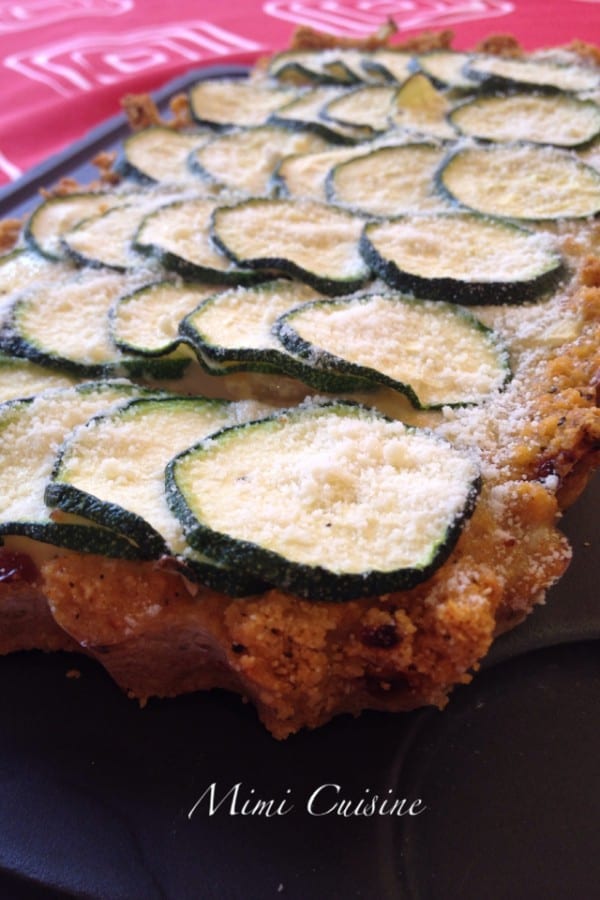 - Déposer la courgette de façon harmonieuse sur la tarte. Saler et poivrer.