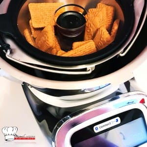 - Dans le mini bol, mettez 70 grammes de chocolat blanc cassé en morceaux puis programmez 20 minutes à 65°C sans mettre de vitesse.