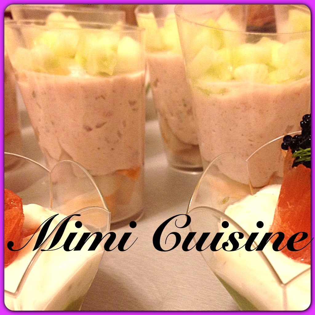 - Couper les bâtonnets de surimi que vous déposez dans le fond de chaque verrine.