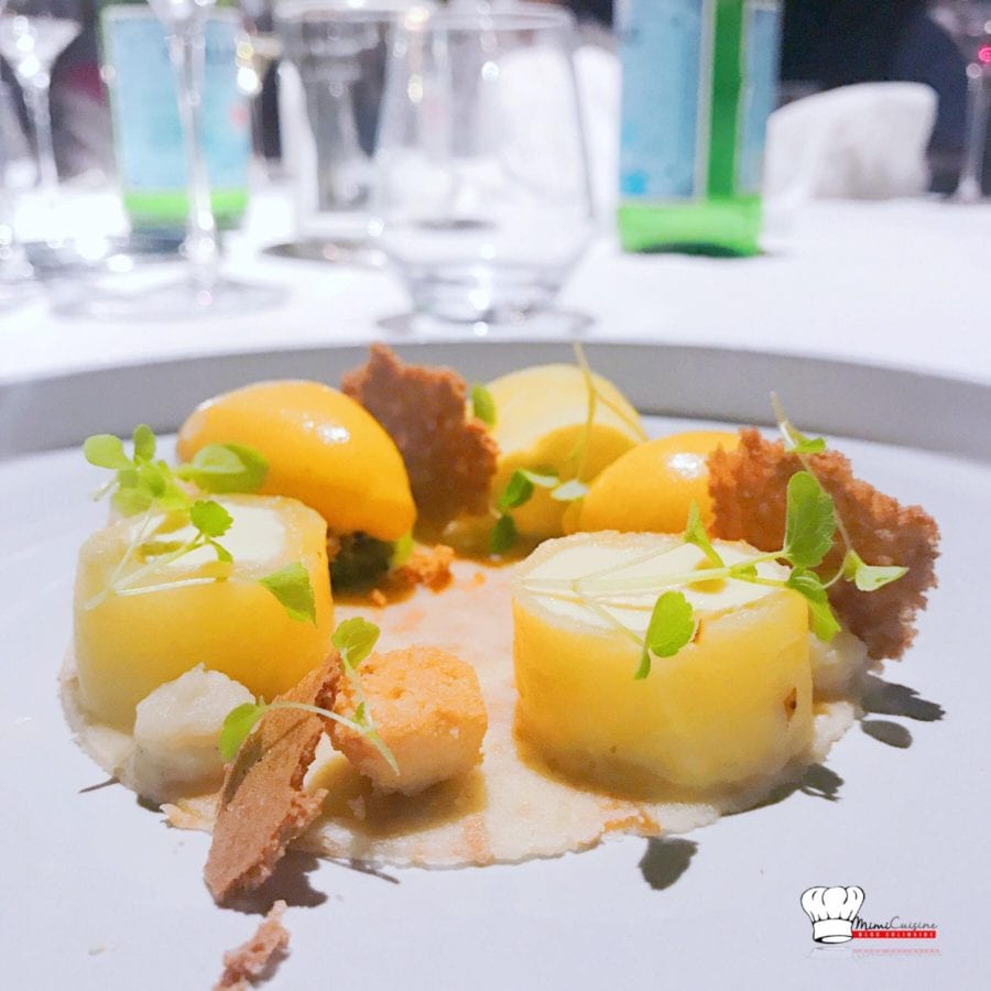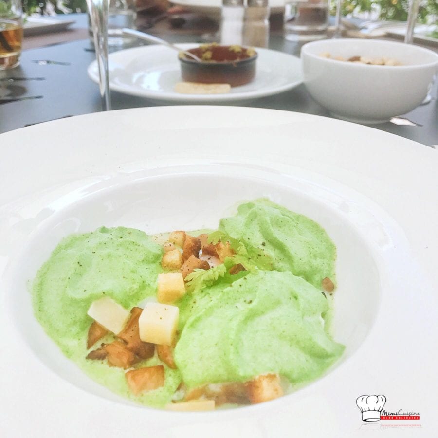 L’Orangerie, restaurant gastronomique dans un cadre idyllique vue sur les jardins avec une magnifique fontaine. Le chef italien Bartolo Curro propose une cuisine gastronomique et généreuse avec des produits locaux et de saison. Il nous a proposé à la dégustation le menu balades gourmandes avec :