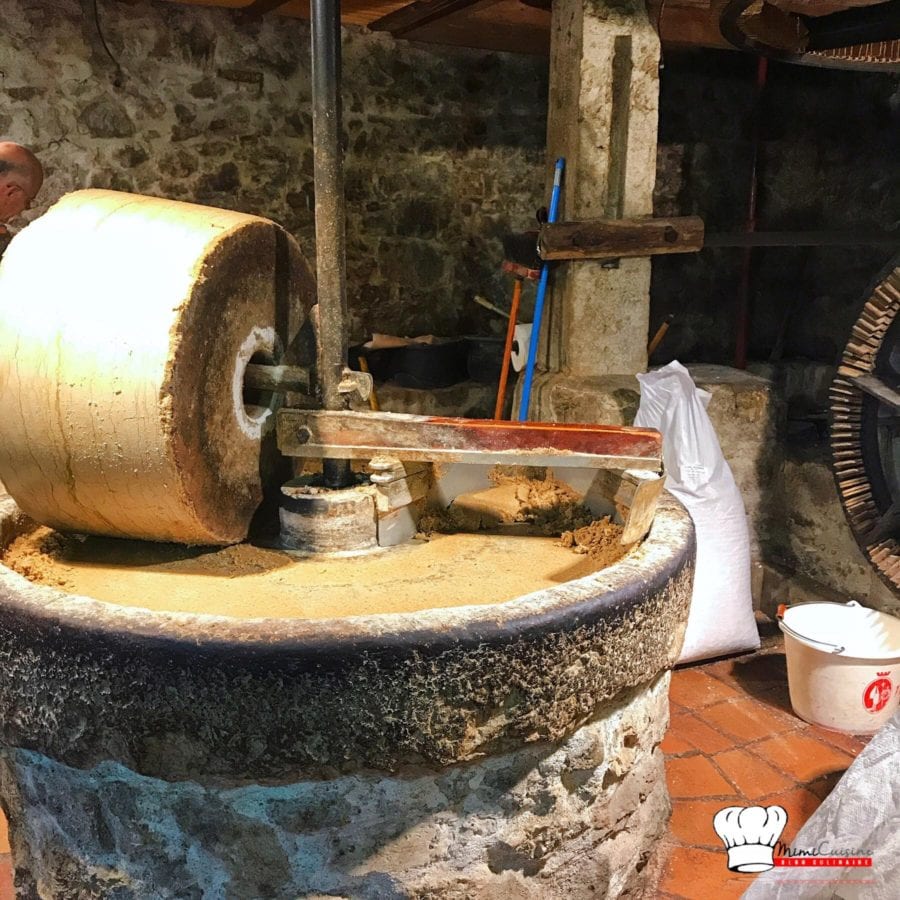 Le moulin de Chanaz qui surplombe le village de Chanaz propose des huiles de noix et noisettes fabriquées avec leur meule. Les noix et noisettes sont écrasées par la meule afin d’obtenir une pâte qui sera chauffée dans leur poêle puis déposée sur une toile pour être pressée. Locales et faites maisons, ces huiles sont divines.