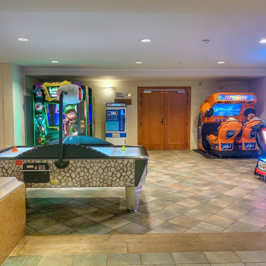 - Une salle d’arcade avec une multitude de jeux dont un avec Sonic le Hérisson ! On y trouve aussi une aire de jeux intérieur pour les petits avec entre autres une piscine à balles et un mini manège Gogo Pony ;
