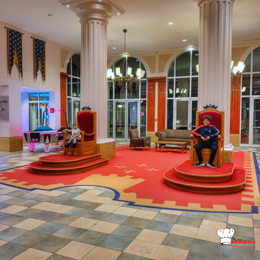 - La Cour Royale avec deux grands trônes où l’espace d’un instant nous sommes le Roi ou la Reine du Château !