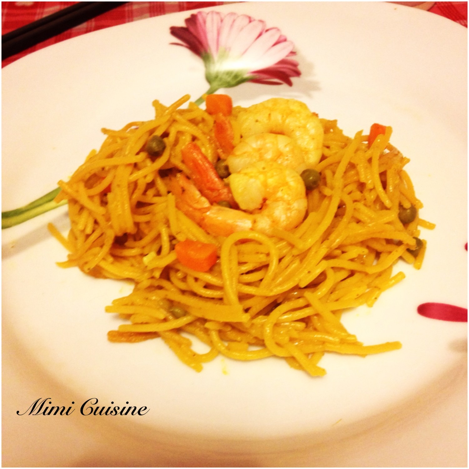 - Ajouter ensuite les spaghettis, les petits pois, la crème fraîche, le curry, saler et poivrer à discrétion.