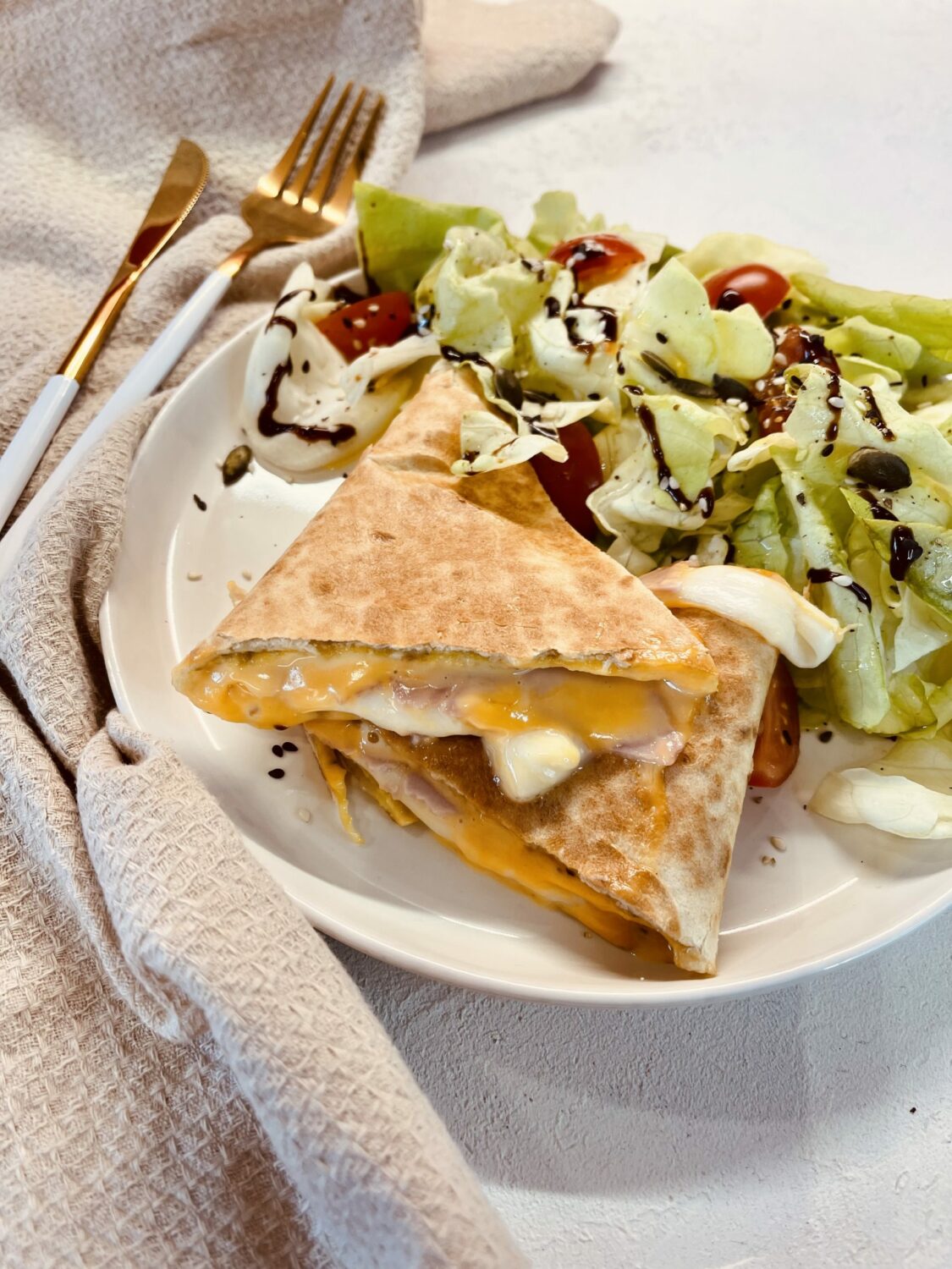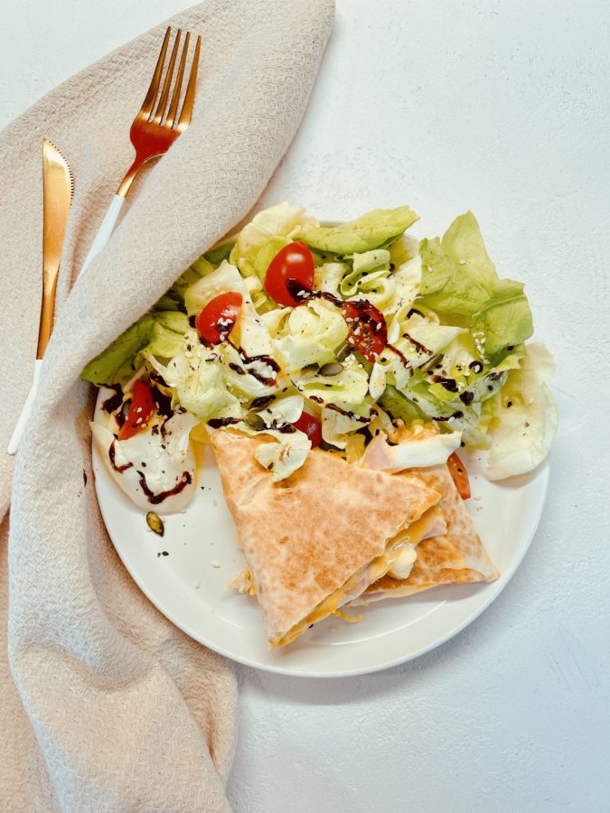 Jour 23 de mon challenge 1 mois dans mon assiette. Je vous propose une recette étudiante prete en 10 min, une tortilla, du cheddar, de la mozzarella, beaucoup de fondant pour une partie de régalade. A accompagner de salade verte ! Je vous laisse découvrir mon Wrap Tortilla Cheddar Mozzarella